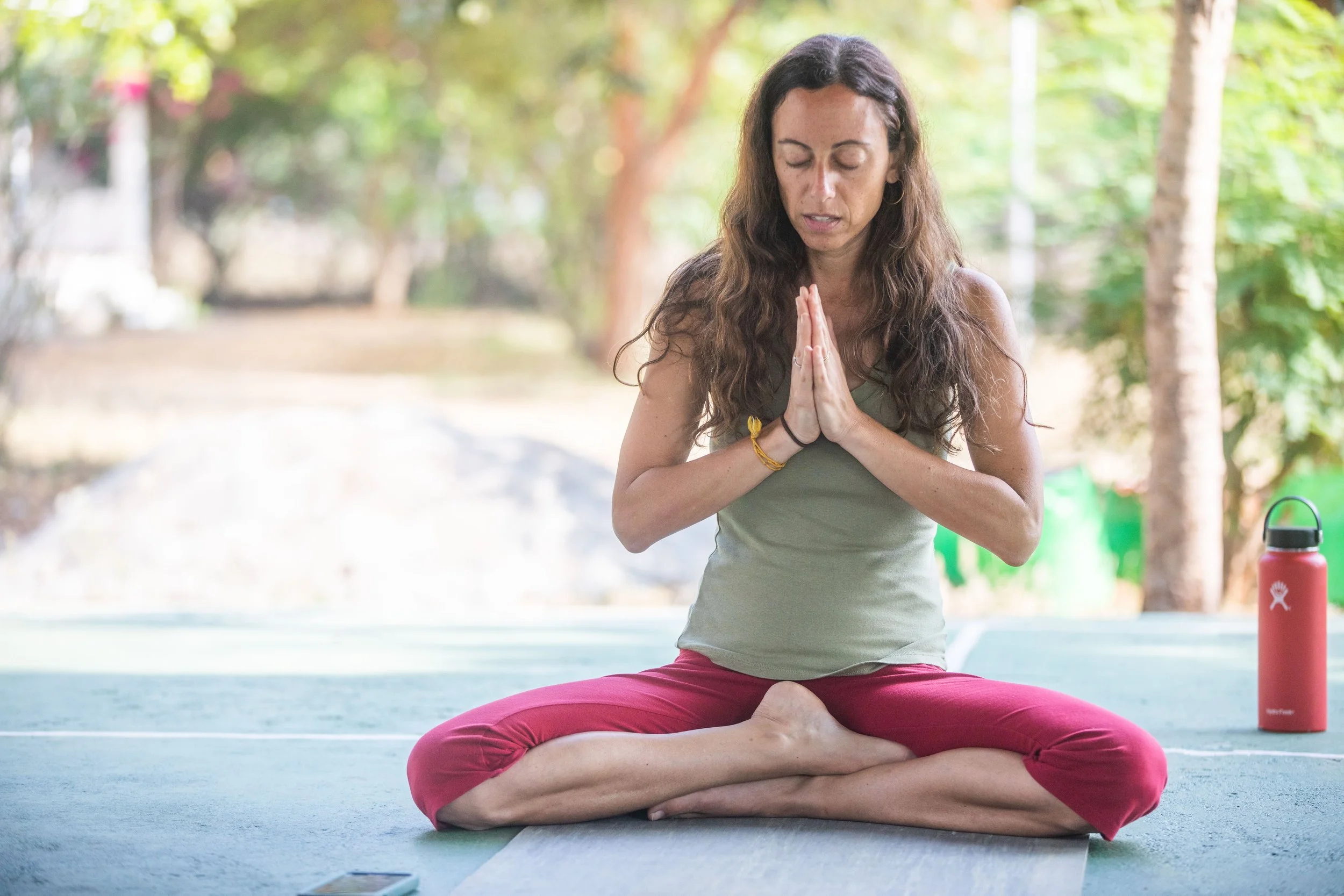 We begin with the four purifications and sometimes additional prānāyāma, move along to japa (utterance/repetition of a mantra, exploring various ones relevant to that week’s focus), and then into a short period of gentle dharana (concentration which may lead to states of dhyāna/meditation).